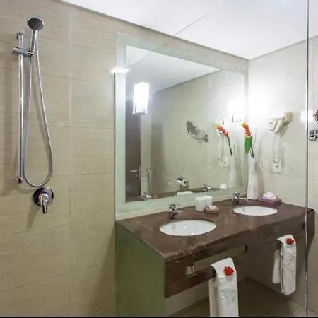 The allergy-free rooms at this Fortaleza resort combine such comforts as climate control with a flat-screen TV with satellite channels. They also comprise a balcony and a seating area. Bedrooms come with extra-long beds. Bathrooms include a separate toilet and a shower, along with bathrobes and towels.
